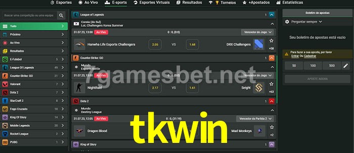 O tkwin oferece uma grande seleção de opções de apostas em e-sports com probabilidades competitivas
